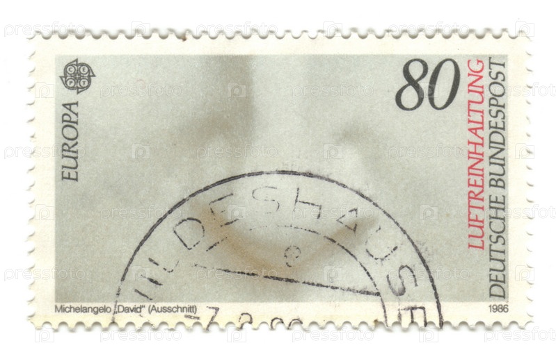 Немецкая марка 1986 года. Фрагмент Давида работы Микеланджело, нос