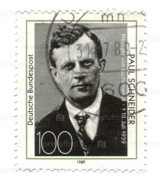 Марка Германии 1989 года. Портрет преподобного Пауля Шнайдера