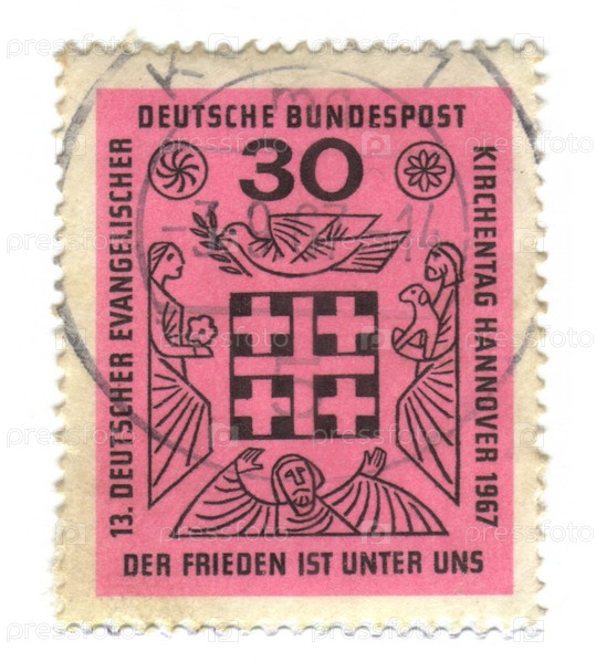 Марка Германии 1967 года. Мир среди нас. 13 совещание немецких протестантов, Ганновер