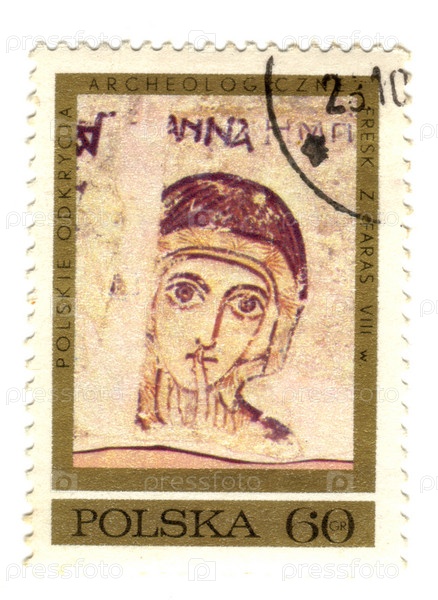 Польская марка 1971 года. Фреска из Фараса с Святой Анной. Серия польских археологических открытий