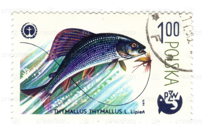 Польская марка 1979 года Морская жизнь Европейский хариус, thumallus thumallus