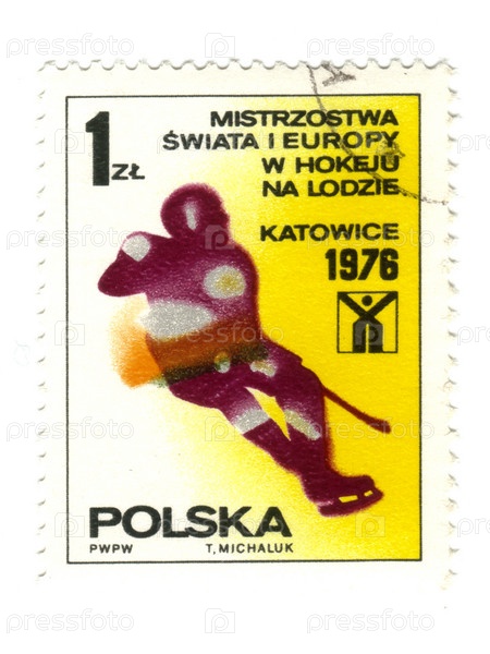 Польская марка 1976 года. Чемпионаты мира и Европы по хоккею
