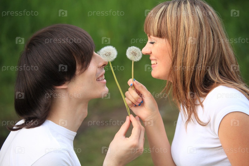 Молодая пара с одуванчиками