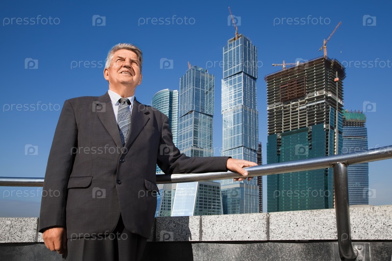 Пожилой бизнесмен возле высотного здания