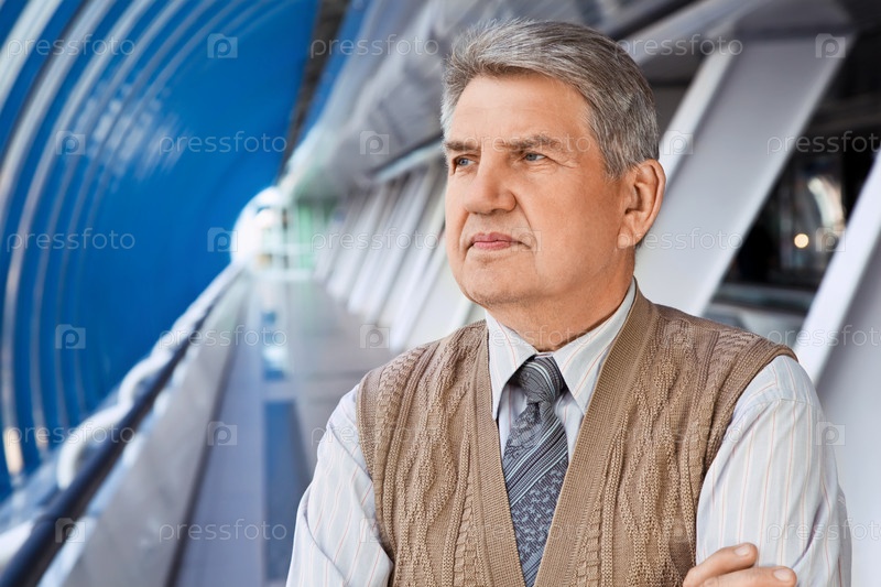 Пожилой мужчина в здании