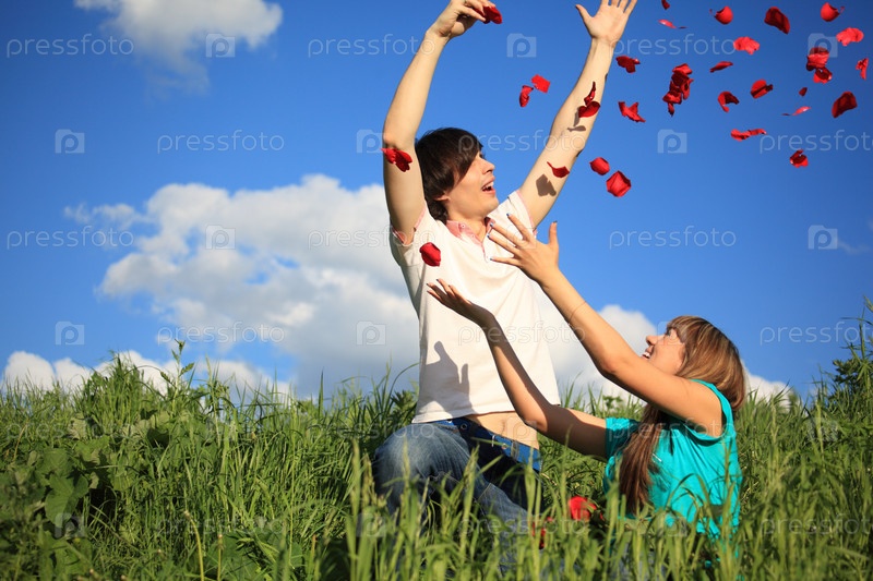 Молодые люди разбрасывают лепестки роз