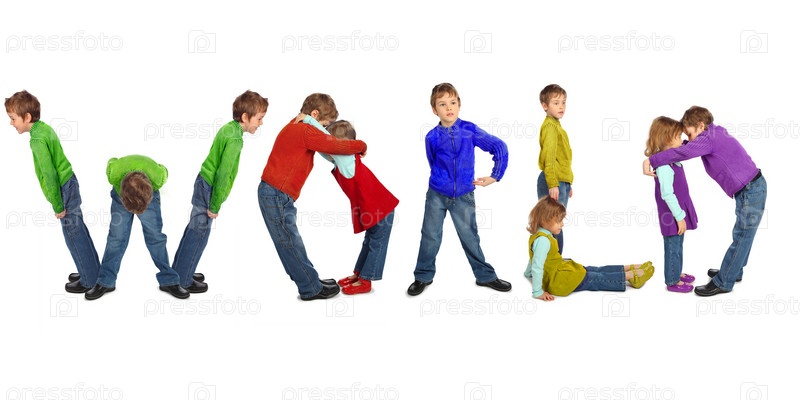 Мальчики и девочки составляют слово МИР (WORLD)