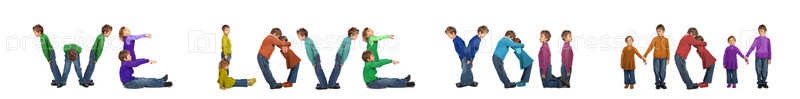 Мальчики и девочки составляют слово Мы любим тебя, мамочка (WE LOVE YOU MOM)