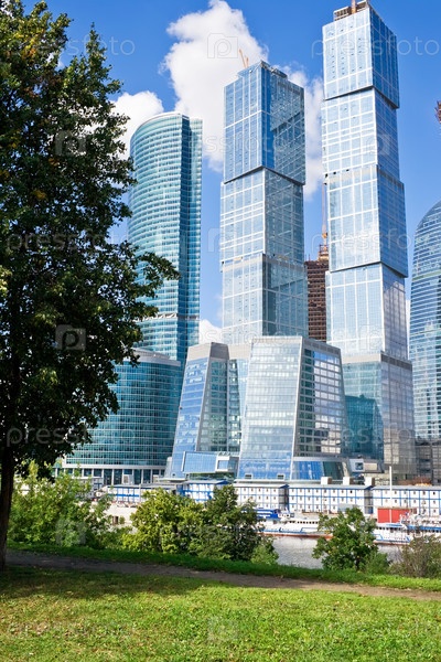 Технология против природы, современные небоскребы и зеленые деревья