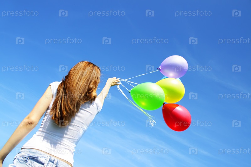 Девушка с воздушными шарами в поле