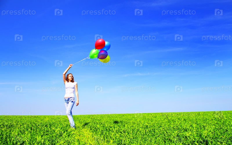 Девушка с воздушными шарами в поле