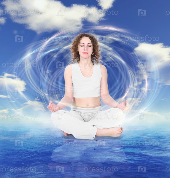 Женщина занимается йогой, коллаж