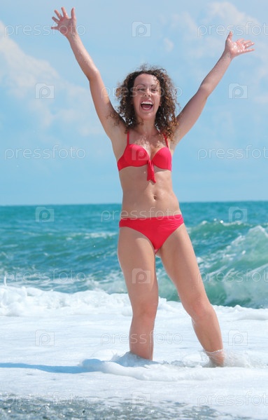 Красивая девушка в купальнике на берегу моря
