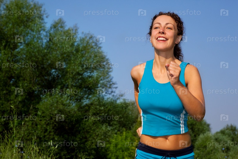 Молодая привлекательная женщина занимается бегом
