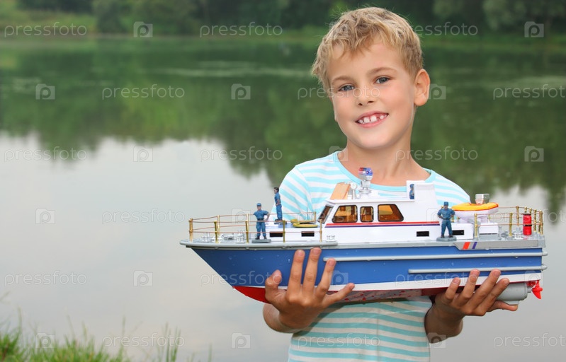 Мальчик с игрушечным корабликом в руках