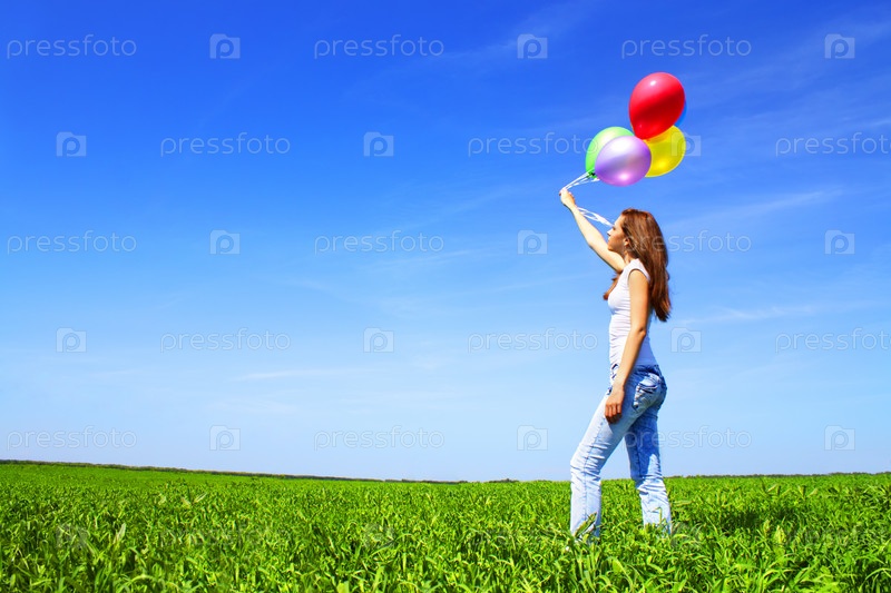 Девушка с воздушными шарами в руке
