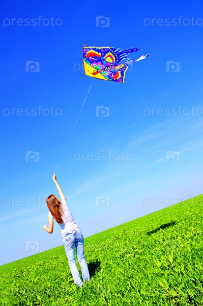 Девушка с воздушным змеем в руках