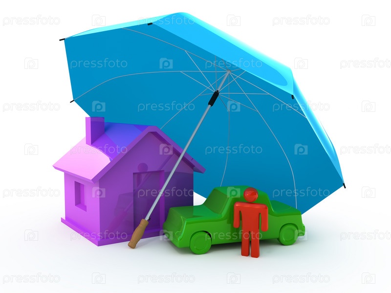 Концепция страхования: человек, автомобиль и дом под защитой