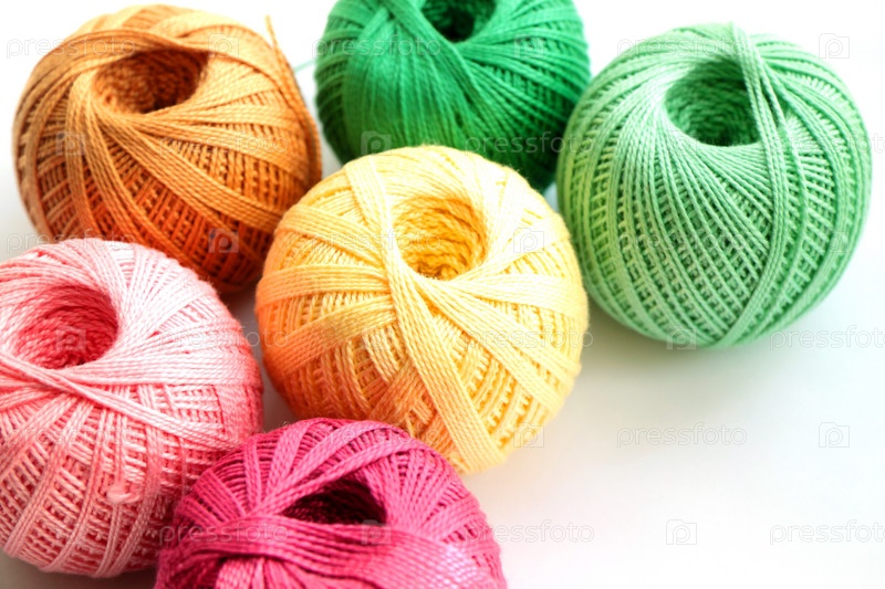 Мотки цветной пряжи на белом фоне
