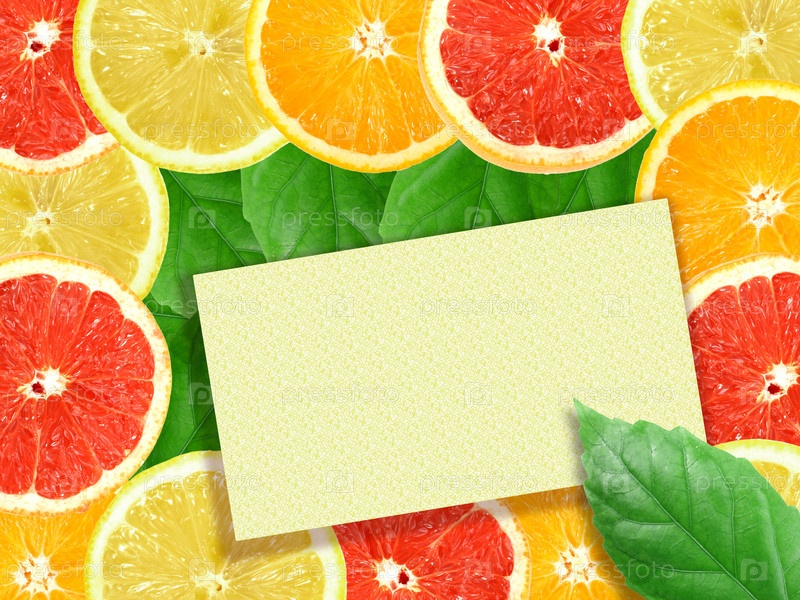 Рамка из цитрусов и пустая карточка с листком