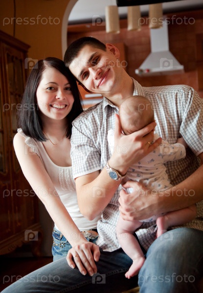 Очаровательный ребенок, отец и мать в доме