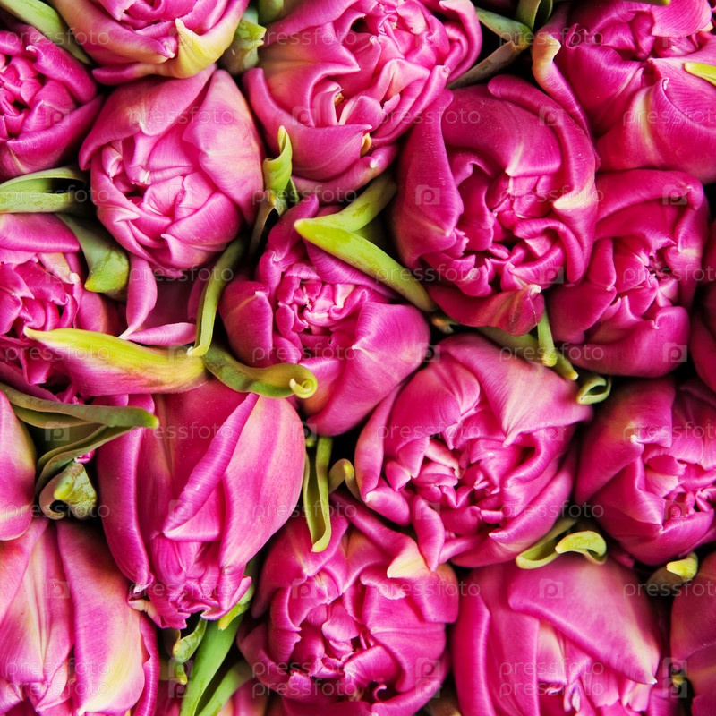 Красивые розовые тюльпаны, большой букет
