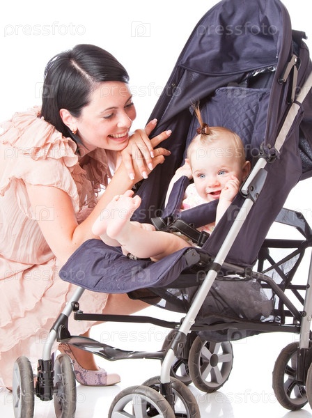 Молодая мама с ребенком в коляске