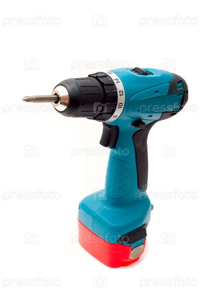 Аккумуляторный шуруповерт на белом фоне