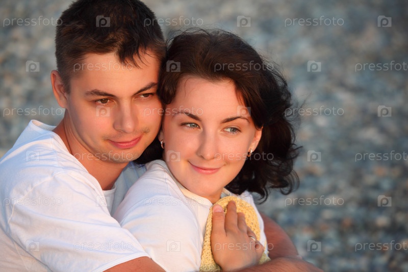 Молодая пара в объятиях на пляже