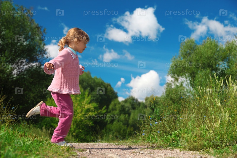 Девочка бегает на природе