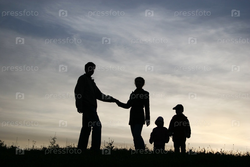 Силуэт семьи с детьми на фоне неба