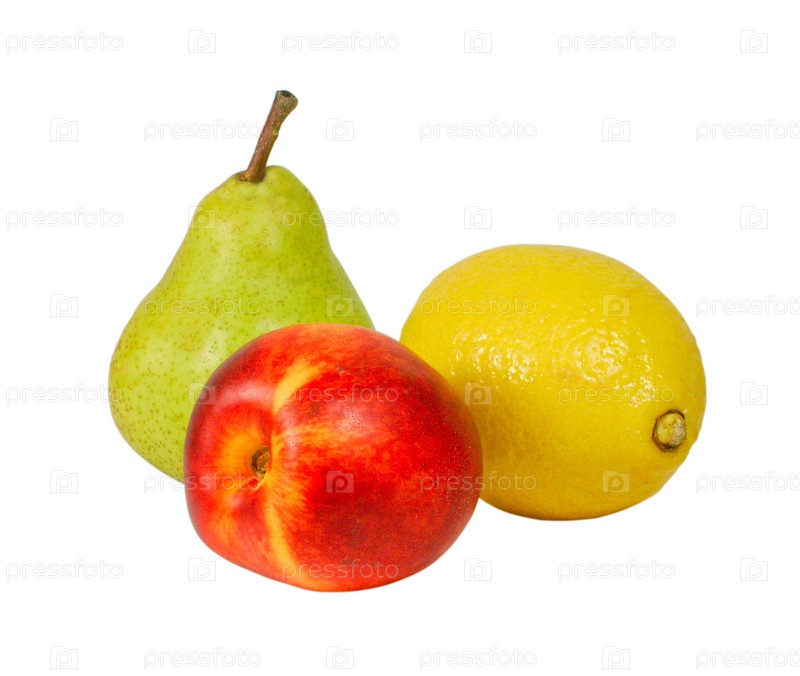 Груша, нектарин и лимон на белом фоне
