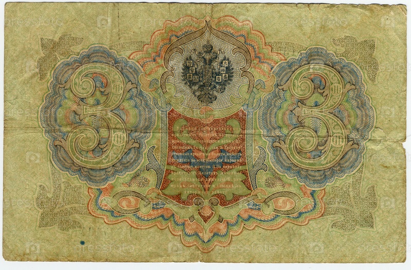 Российская бумажная купюра 3 рубля 1905 года. Оборотная сторона