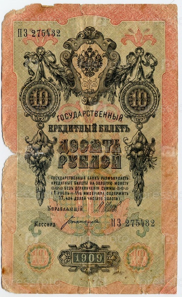 Российская бумажная купюра 10 рублей 1909 года