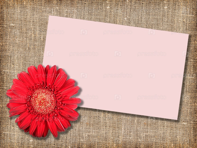 Красный цветок рядом с открыткой