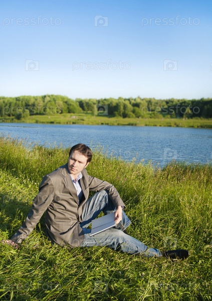 Мужчина с книгой на природе