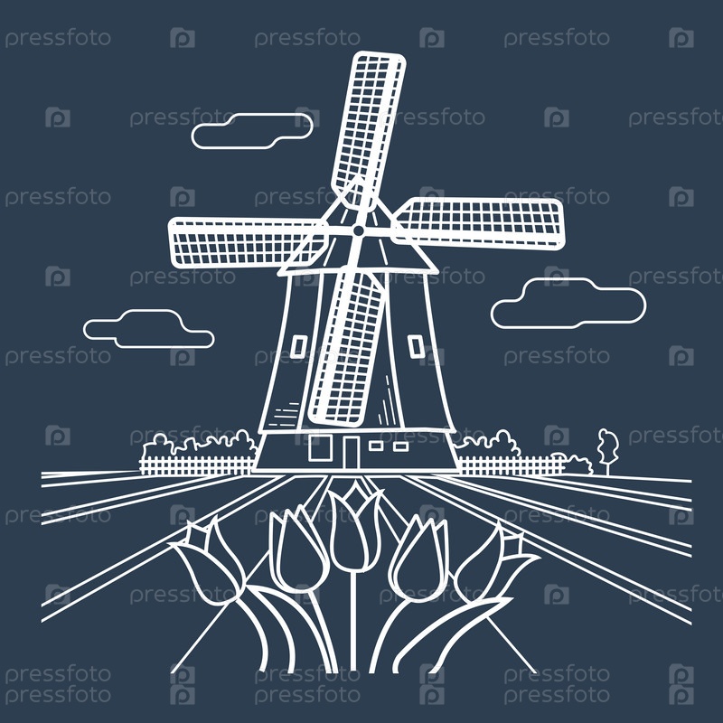 Силуэт традиционной мельницы Голландии