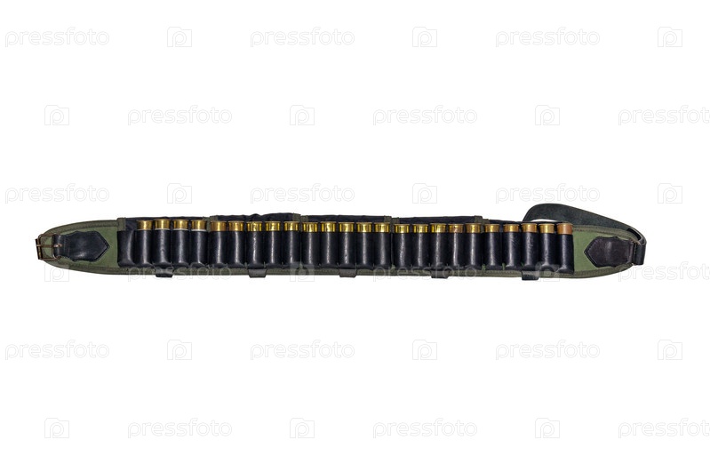 Патронташ с кожаным ремнем и патронами для гладкоствольного ружья