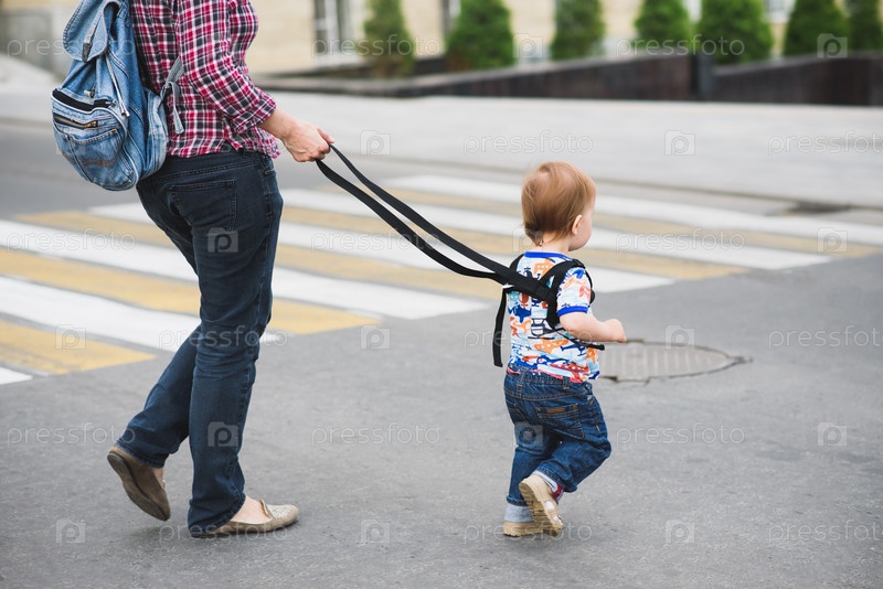 Мама страхует своего ребенка во время прогулки