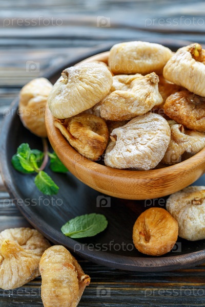 Сладкий сушеный инжир в деревянной миске