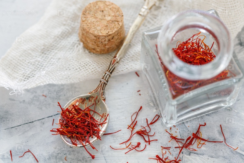 Бутылка и ложка с шафраном