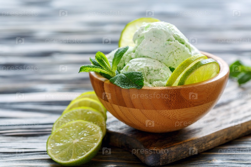 Чаша с домашним мороженым из мяты и лайма