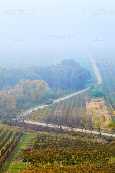 Холмы с виноградниками и дороги, Южная Моравия, Чешская Республика