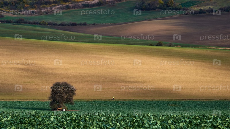 Осенний пейзаж со старым деревом, Южная Моравия, Чехия