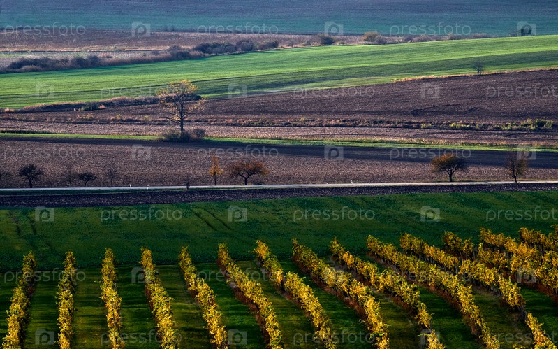 Красивый красочный осенний пейзаж, Южная Моравия, Чехия