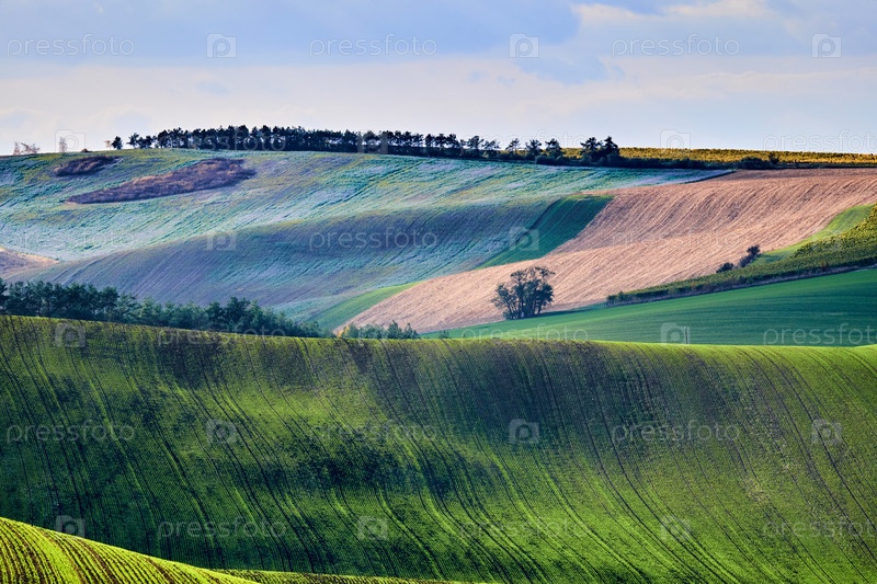 Вид красивых полей, Южная Моравия, Чехия