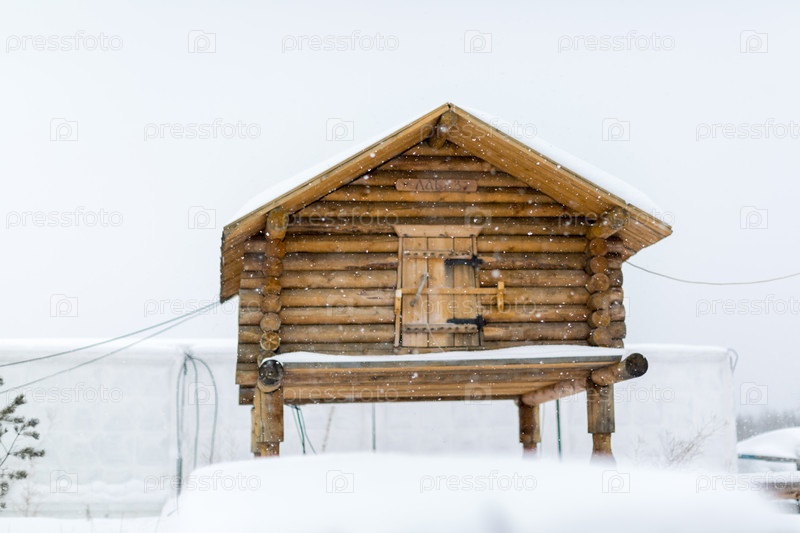 Бревенчатый дом на сваях