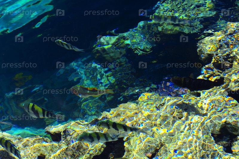 Разноцветная красивая морская рыба на размытом фоне коралловых рифов. Шарм-эль-Шейх, Египет