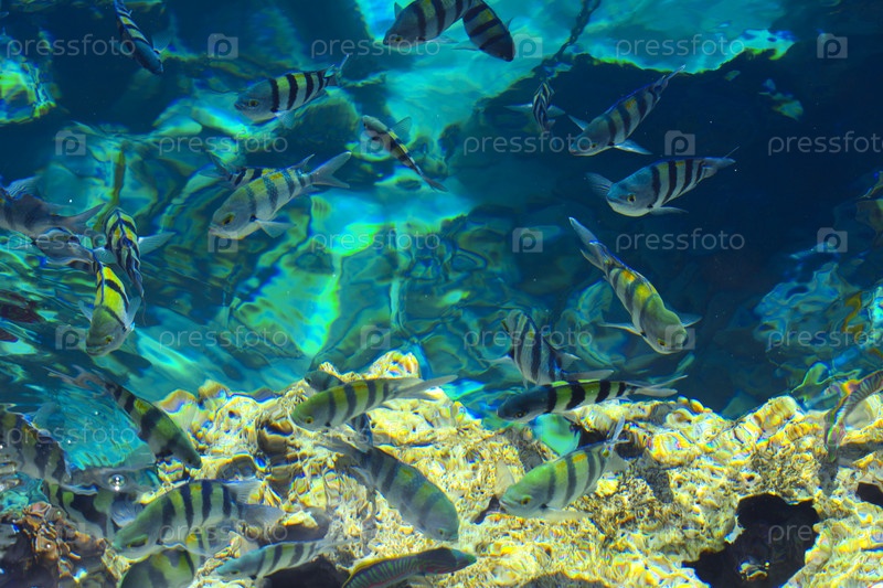Разноцветная красивая морская рыба на размытом фоне коралловых рифов. Шарм-эль-Шейх, Египет