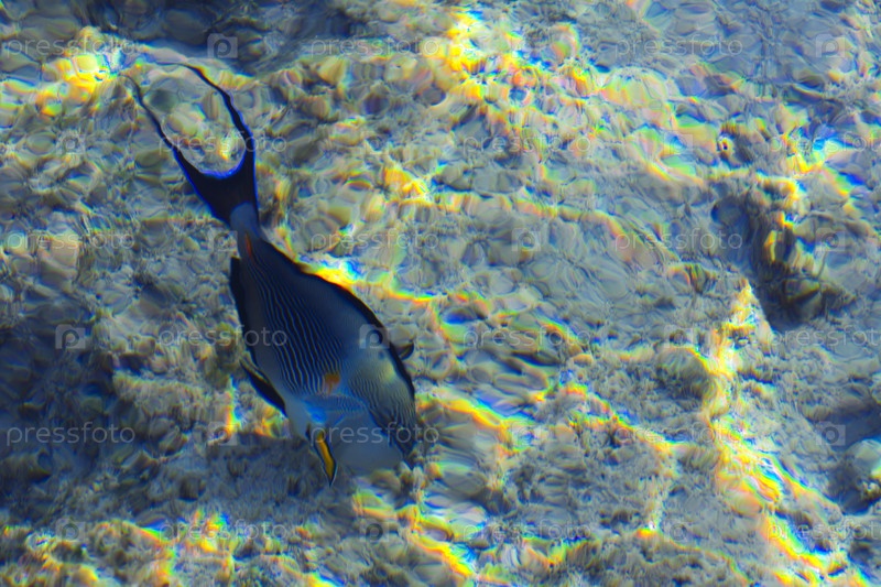 Разноцветная красивая морская рыба на размытом фоне коралловых рифов. Шарм-эль-Шейх, Египет